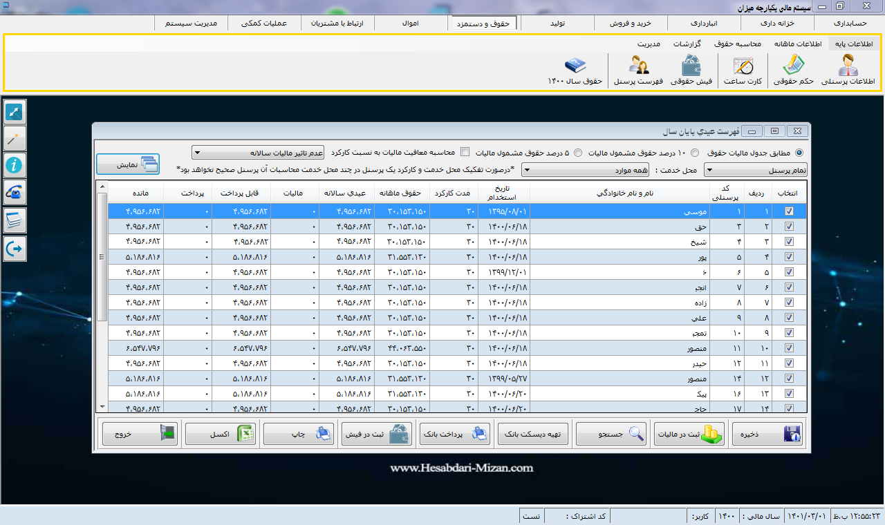 امروز قصد داریم به شما یاد بدهیم که چگونه می توان در نرم افزار حقوق و دستمزد میزان به محاسبه عیدی پرسنل پرداخت.